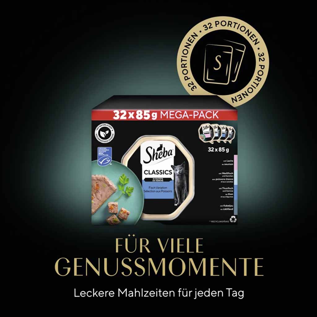 32x Sheba Fisch Varietäten Schälchen Mega Pack á 85g = 2720g