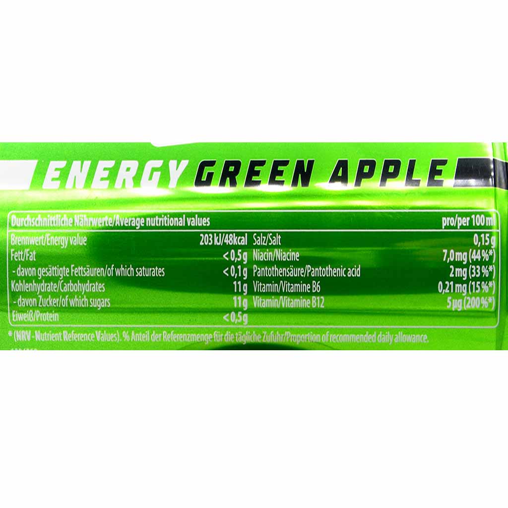 Koffeinhaltiges Erfrischungsgetränk mit frischem Apfelgeschmack, Taurin und Vitaminen – der perfekte Energieschub für unterwegs oder beim Sport. Spritzig, fruchtig und belebend mit dem typischen Energy-Kick.