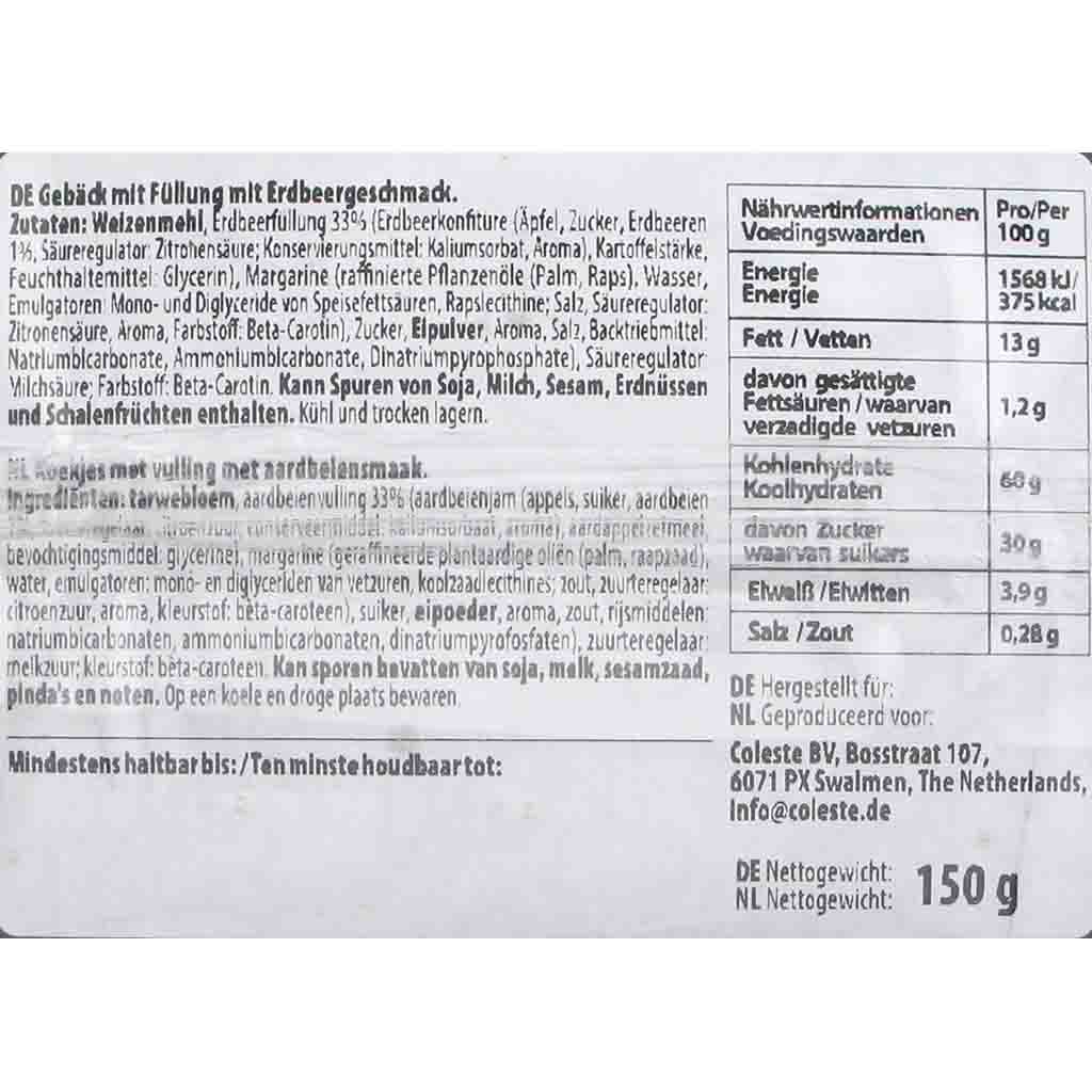 Gebäck mit Füllung mit Erdbeergeschmack. Inhalt: ca. 9 Stück Gebäck.