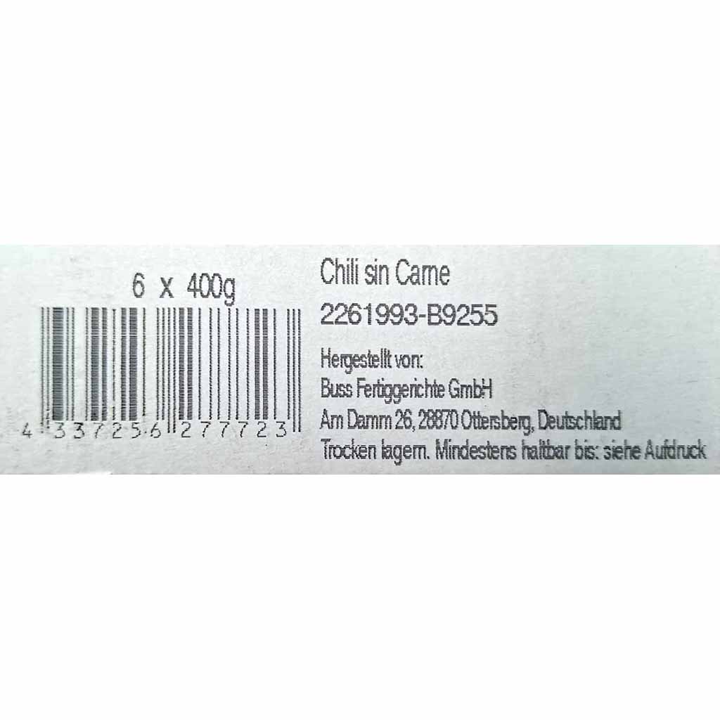 Buss Chili Sin Carne Vegan Bohnengericht 6x400g Dosen MHD 24.06.28
