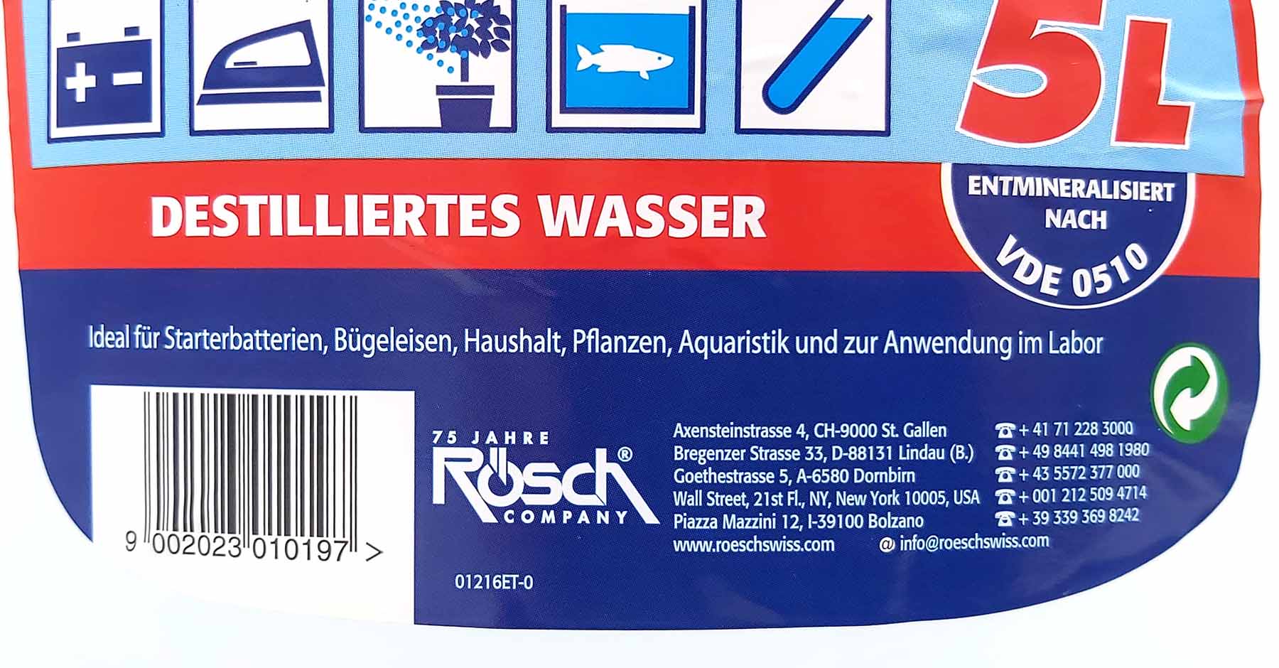 Inhaltsstoffe: Destilliertes Wasser, Entmineralisiert nach VDE 0510