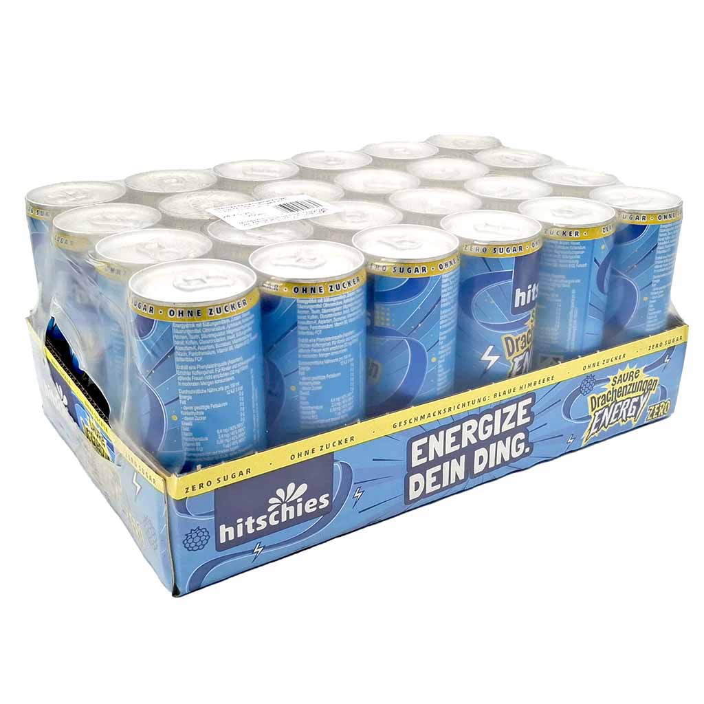 VE 24x Hitschies Saure Drachenzungen Energy Zero Himbeere DOSE á 250ml = 6L - zuzüglich EINWEGPFAND