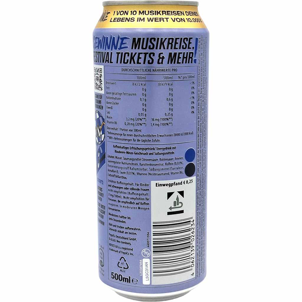 VE Rockstar Energy Drink Zero Sugar Blueberry Mint Flavour Dose 12x500ml=6L zzgl. EINWEGPFAND
