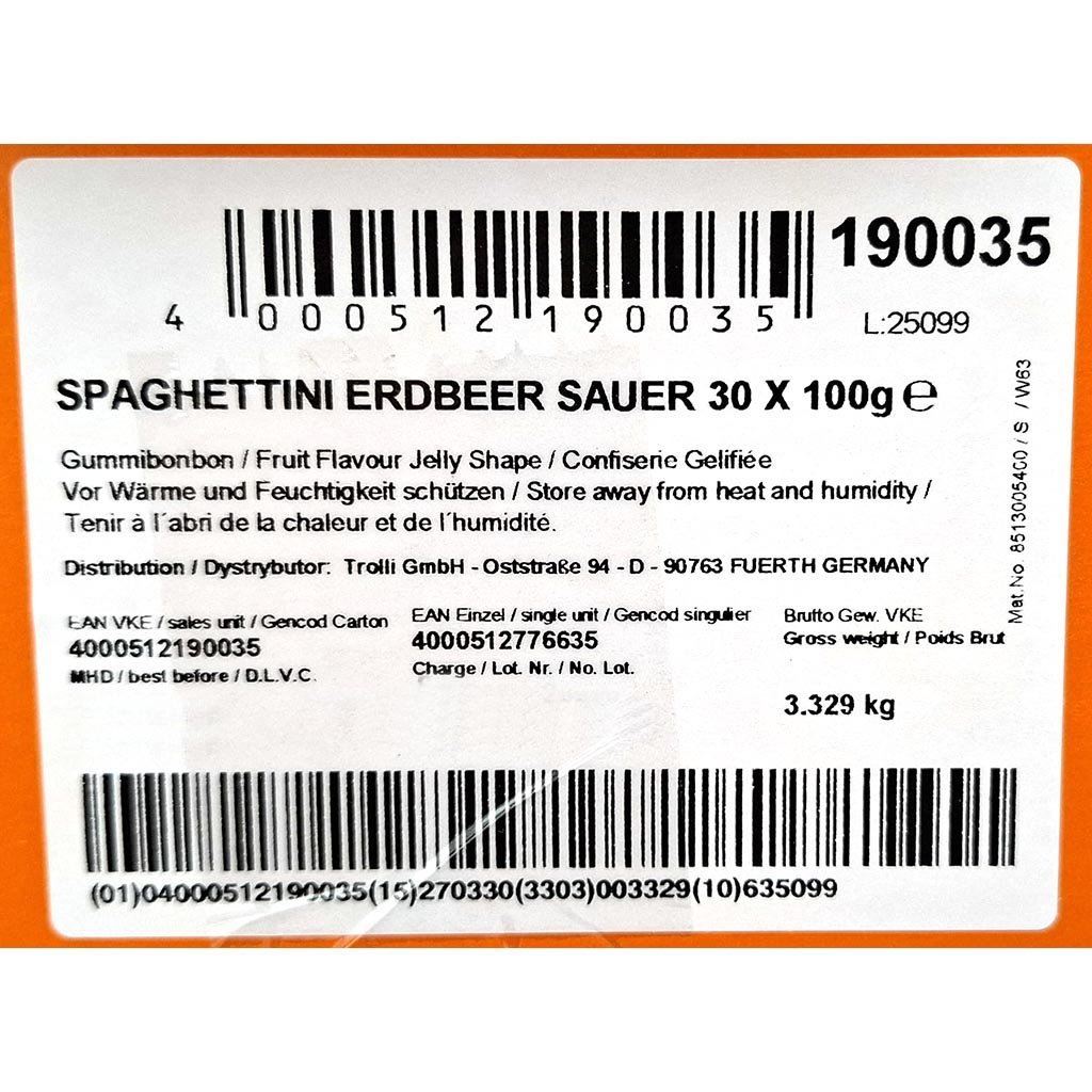 Trolli Spaghettini Sour Strawberry 30x100g = 3kg