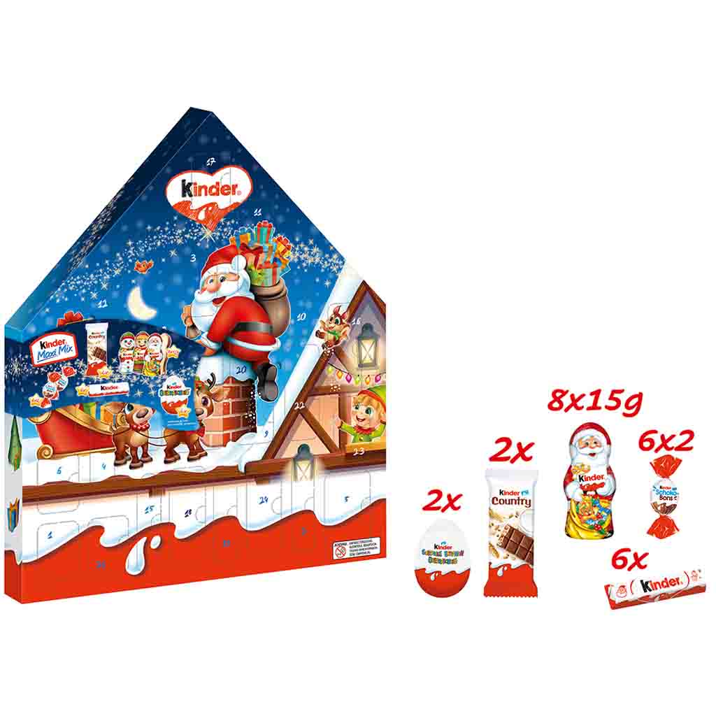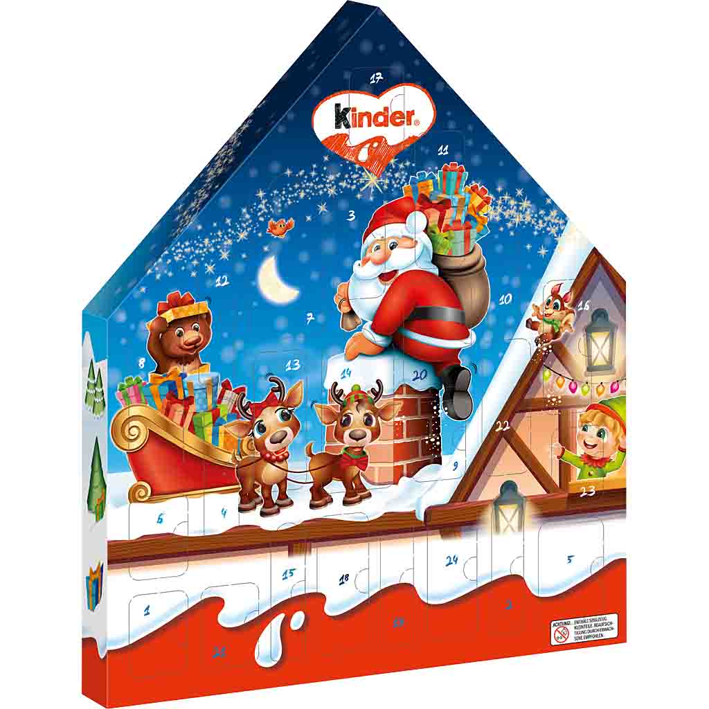 Leckere Überraschungen rund um das kinder Schokolade-Sortiment aus Vollmilchschokolade und Milchcreme verbergen sich hinter den 24 Türchen. Entdecken Sie jeden Tag einer dieser Köstlichkeiten, die nicht nur den Jüngsten gefallen. 24 Stück.