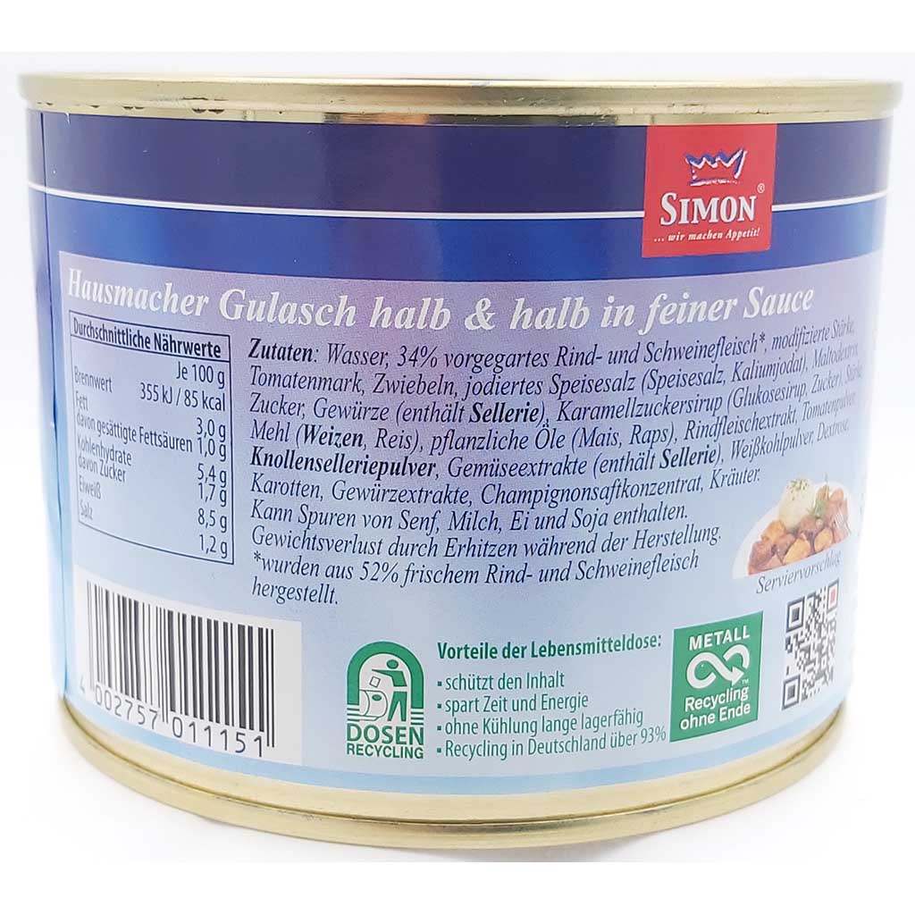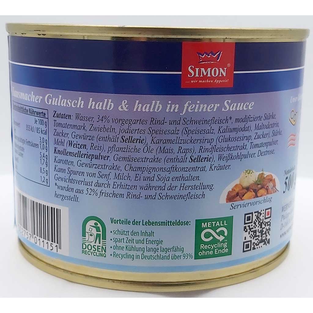 Simon Delikatess Hausmacher Gulasch in Sauce 500g MHD 28.05.28