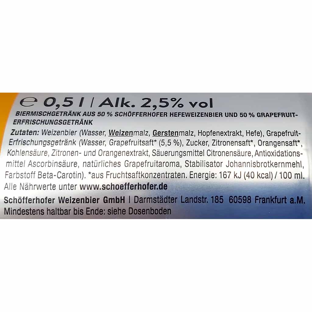 VE 24x Schöfferhofer Weizen-Mix Grapefruit 0,5L Dosen = 12 L zzgl. Einwegpfand, 2,5 % Vol.