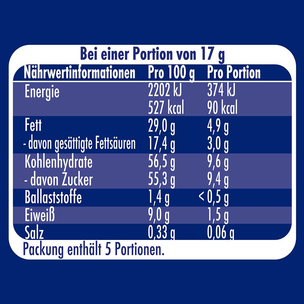 Kann enthalten: ERDNÜSSE, SOJA und NÜSSE.