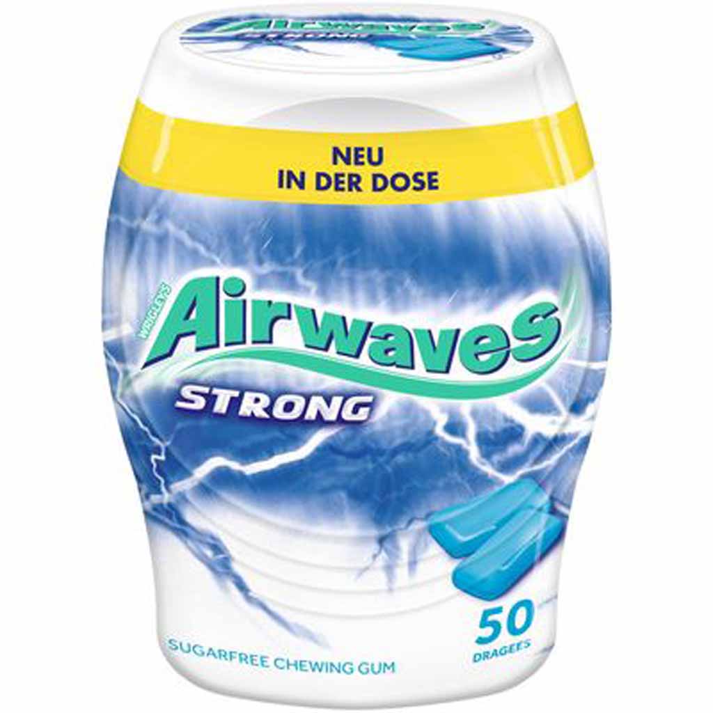 12 Dosen mit jeweils 50 zuckerfreien Kaugummi-Dragees. Wrigley's Airwaves Strong sind die zuckerfreien Kaugummi-Dragees im Hosentaschenformat. Für besonders tiefes Durchatmen sorgt der hohe Gehalt aus ätherischen Menthol-Ölen in Kombination mit dem packenden extrastarken Geschmack von erfrischendem Eukalyptus.