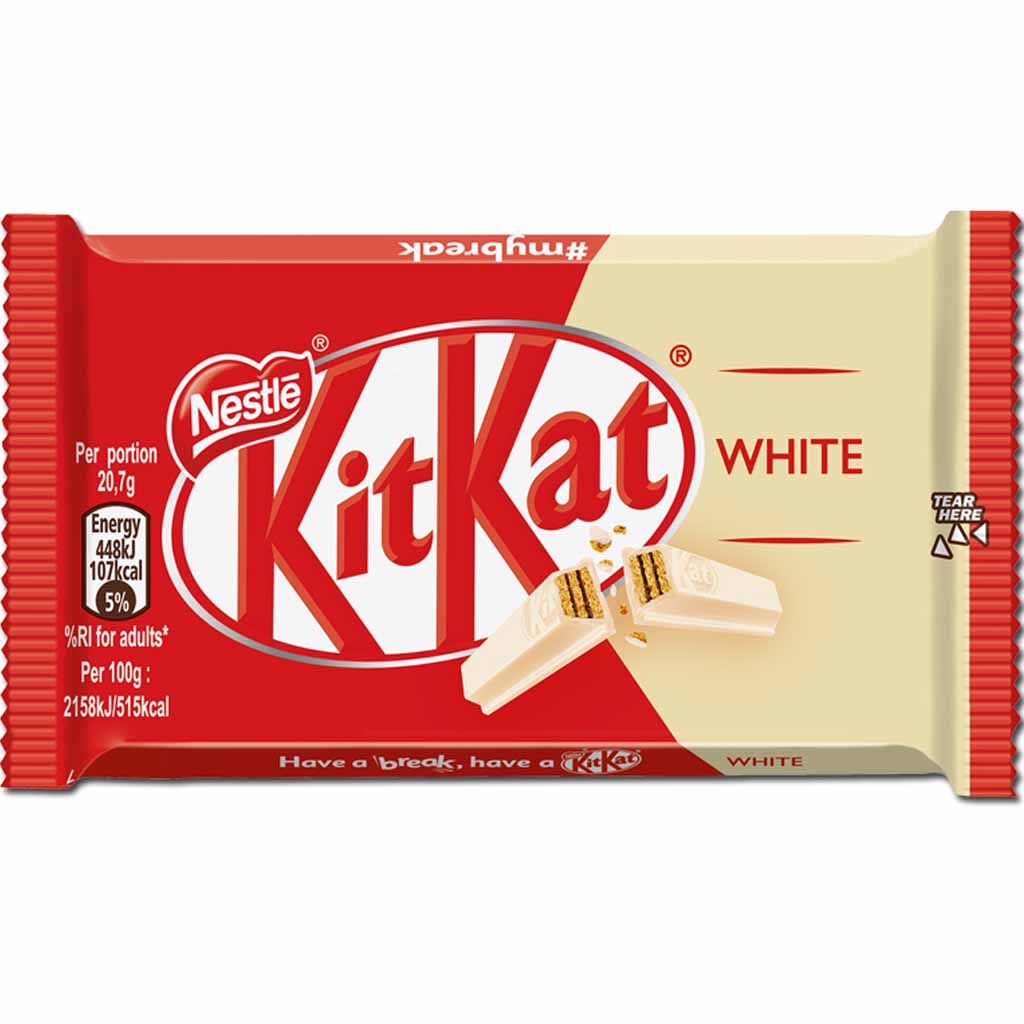 Knusperwaffeln umhüllt von weißer Schokolade. Im Thekendisplay.