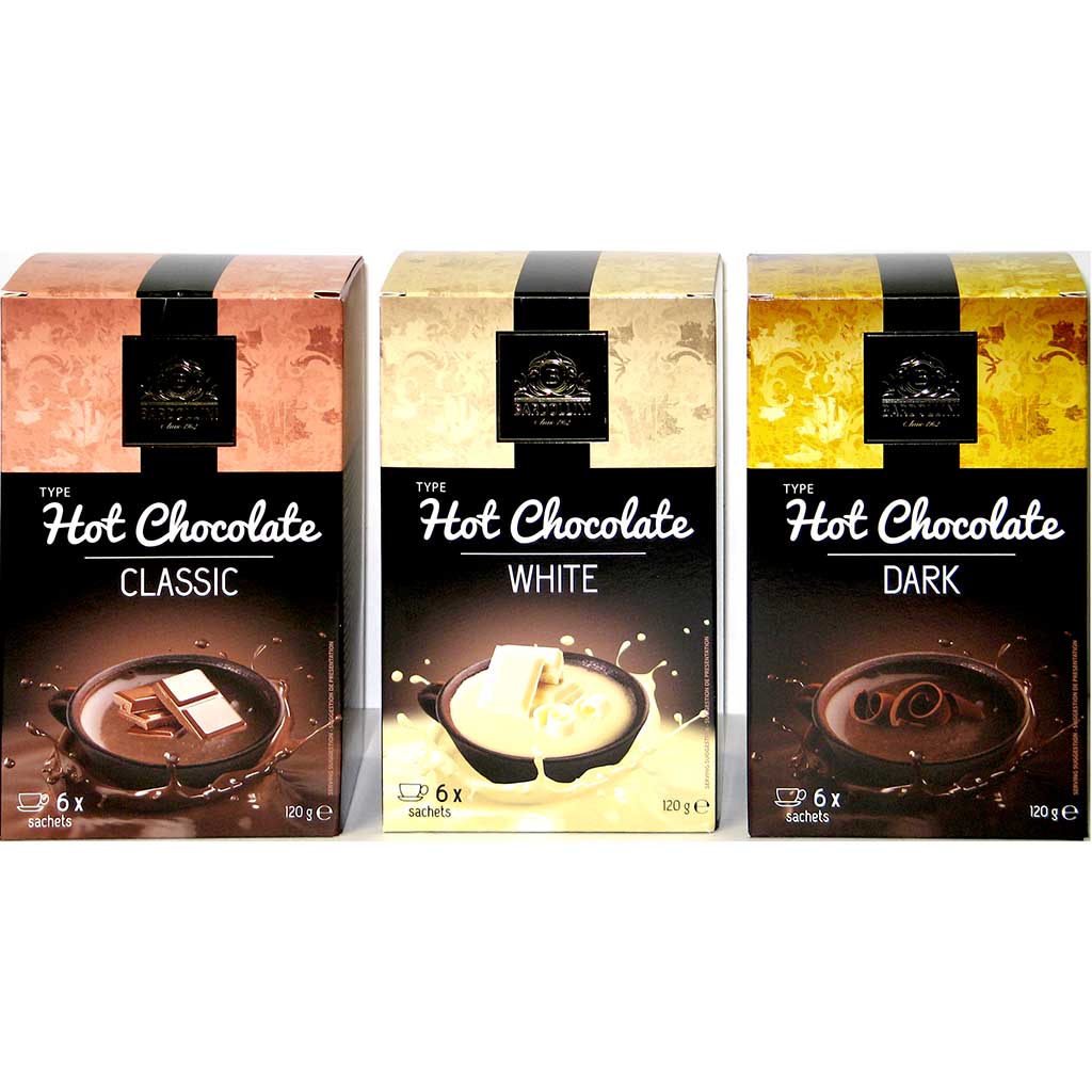 6 Portionsbeutel mit kakaohaltigem Getränkepulver mit Weiße Schokolade Geschmack