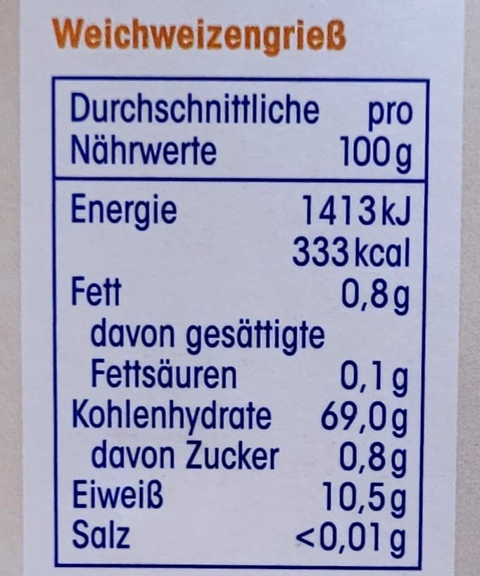 ja! Weichweizengriess 500g MHD 30.03.27