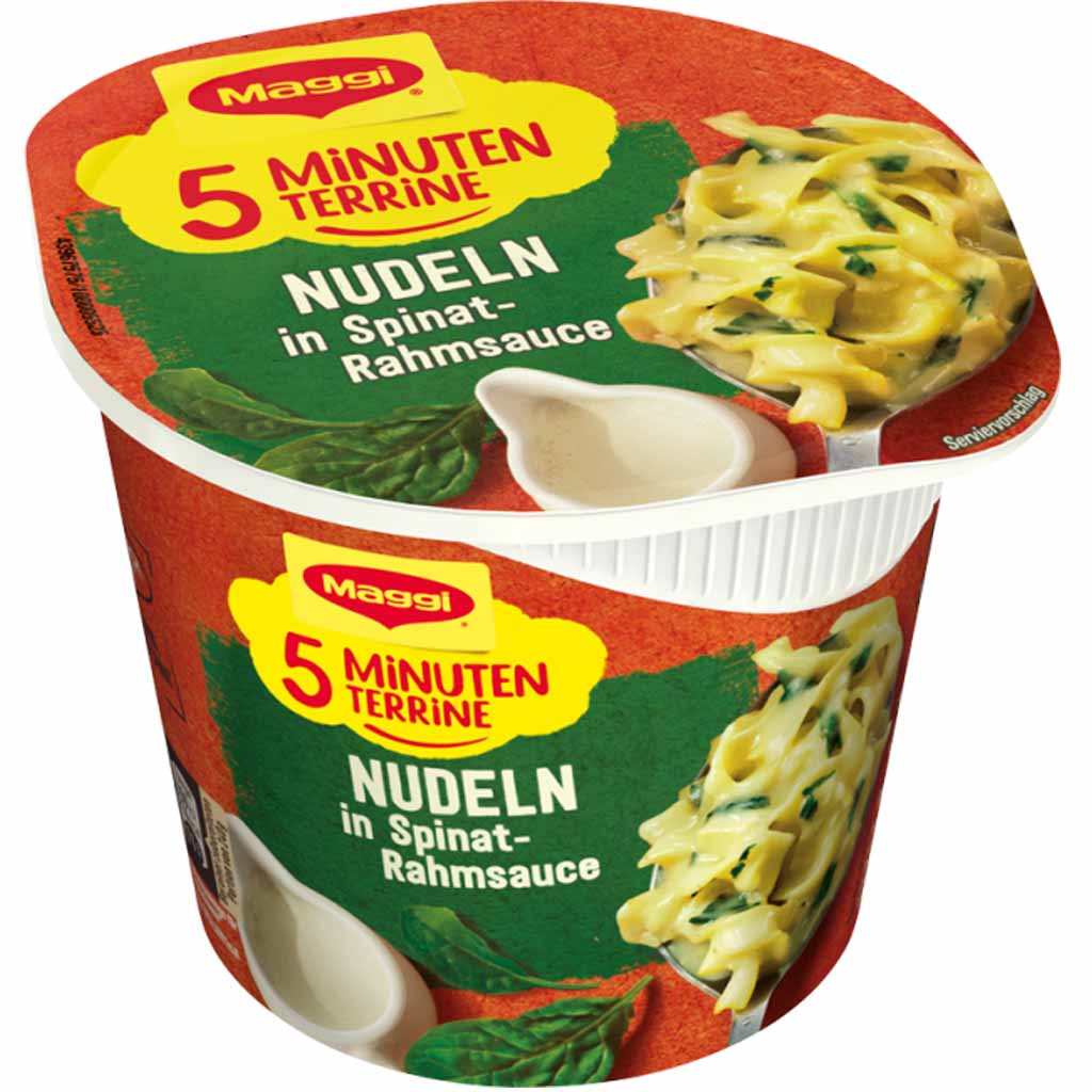 VE 8x Maggi 5 Minuten Terrine Nudeln Spinat Rahmsauce á 50g = 400g