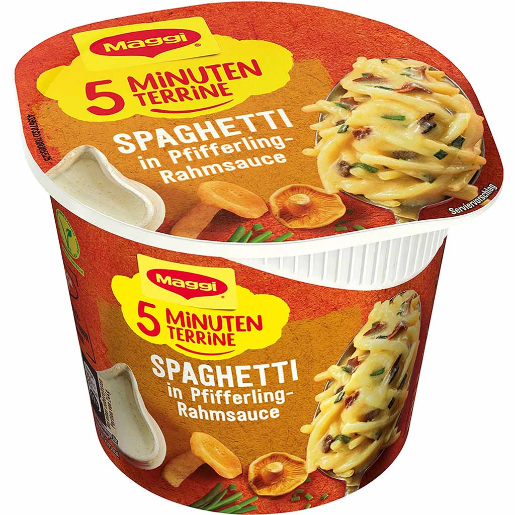 VE 8x Maggi 5 Minuten Terrine Spaghetti in Pfifferling Rahm Sauce á 54 = 432g