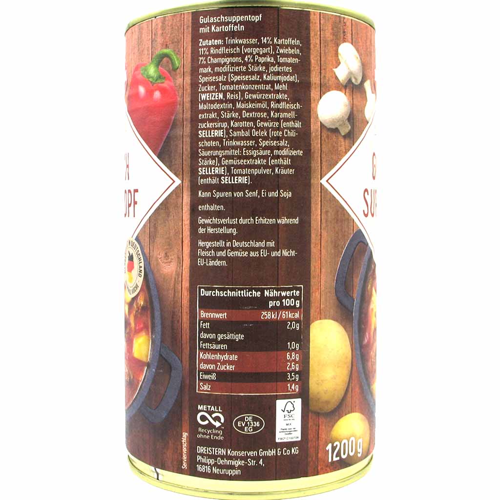 Dreistern Gulasch Suppentopf Rindfleisch 1200g