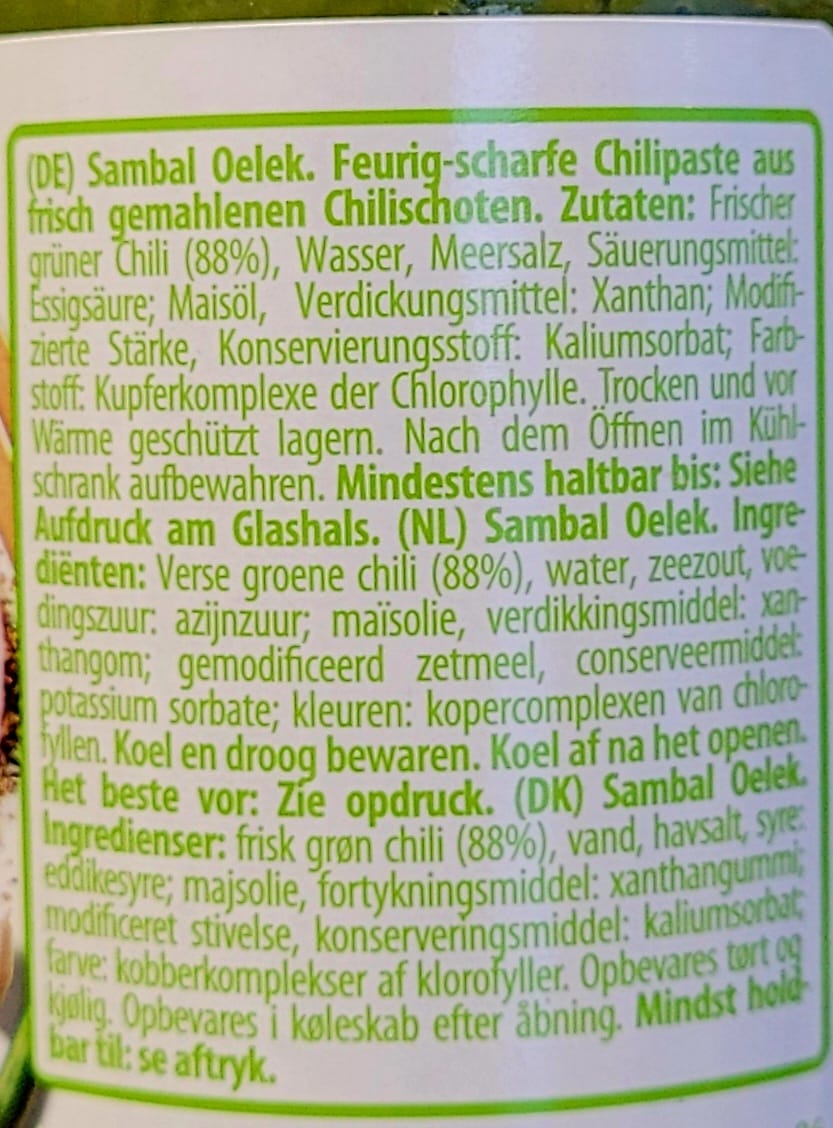 Kay-Li Sambal Oelek Green 88% Chili 200g