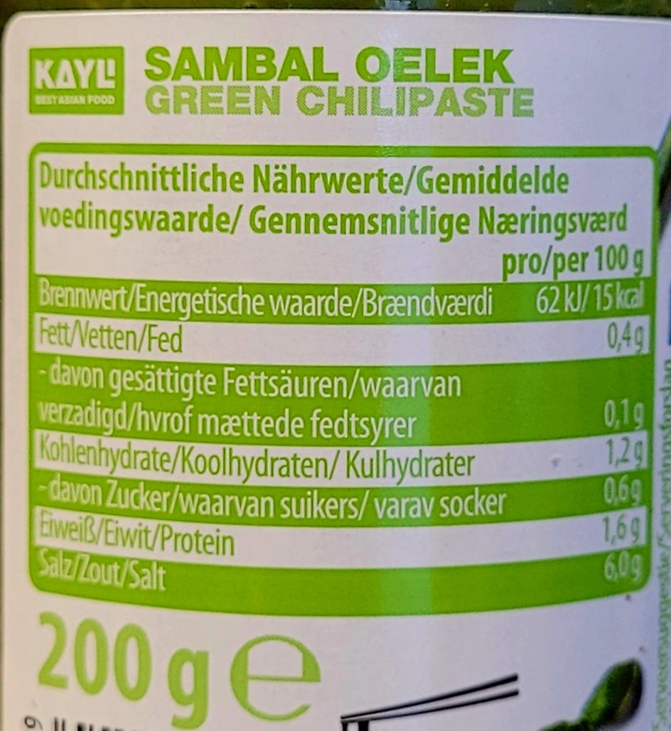 Kay-Li Sambal Oelek Green 88% Chili 200g MHD 09.11.25