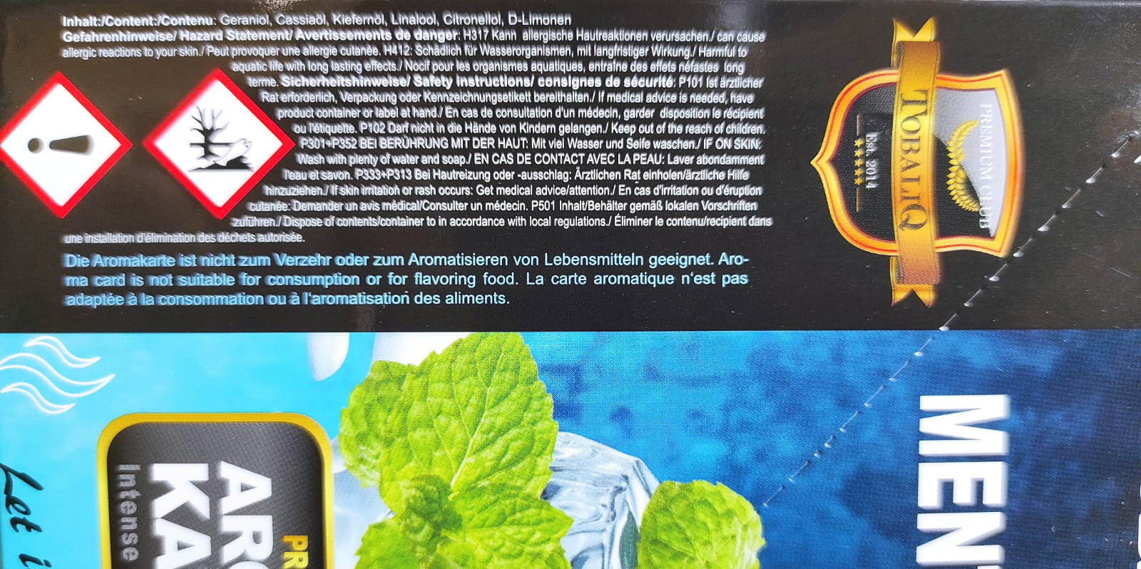 TobaliQ Menthol Aroma Karte für Zigaretten. Es befinden sich 25 Karten in einer Box. Zur Aromatisierung der Zigaretten legen Sie die Karte in die Zigarettenschachtel. Warten Sie am besten mindestens 30 Minuten, bevor Sie die erste, aromatisierte Zigaretten rauchen, damit sich das Aroma bestmöglich entfalten kann. Je länger Sie die Karte in der Zigarettenschachtel belassen, desto intensiver wird der Geschmack. So haben Sie die Möglichkeit, die Intensität selber zu bestimmen.