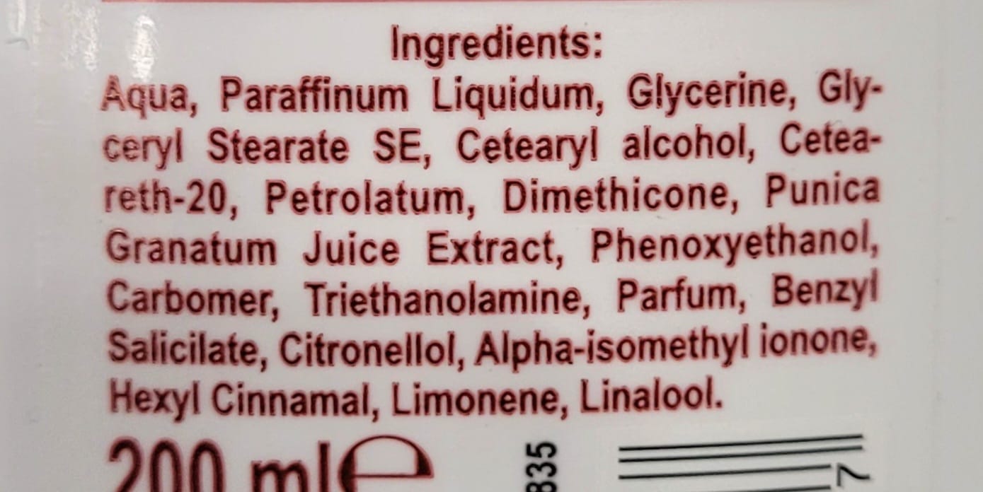 Entdecken Sie die luxuriöse Elina Granatapfel Body Milch in der praktischen 200ml Flasche. Diese reichhaltige Körpermilch vereint die pflegenden Eigenschaften des Granatapfels mit einer leichten, schnell einziehenden Textur, die Ihre Haut intensiv mit Feuchtigkeit versorgt. Die antioxidativen Eigenschaften des Granatapfels helfen, die Haut zu revitalisieren und ihr ein strahlendes Aussehen zu verleihen. Die Elina Granatapfel Body Milch ist ideal für die tägliche Anwendung und hinterlässt ein angenehmes Hautgefühl sowie einen dezenten, fruchtigen Duft. Verwöhnen Sie Ihre Haut mit dieser hochwertigen Körpermilch und genießen Sie ein Gefühl von Frische und Wohlbefinden. Perfekt für alle Hauttypen!