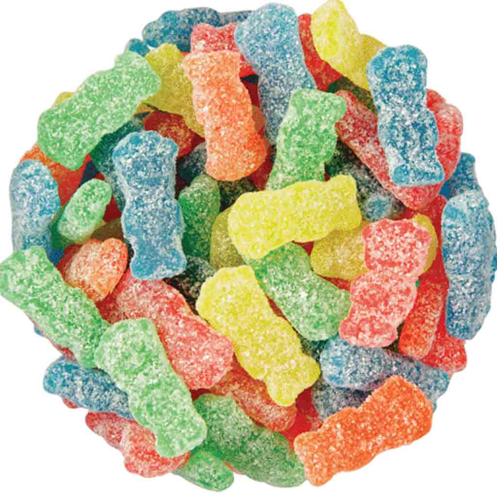 Zutaten: Zucker, Invertzucker, Maissirup, modifizierte Maisstärke, enthält weniger als 2% von Säuerungsmittel (E334, E330), Konservierungsmittel (E270), natürliche und künstliche Aromen, Farbstoffe (E129, E133, E110).
