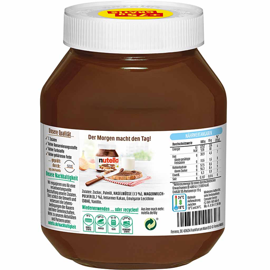 Zutaten: Zucker, Palmöl, HASELNÜSSE (13%), MAGERMILCHPULVER (8,7%), fettarmer Kakao, Emulgator Lecithine (SOJA), Vanillin.