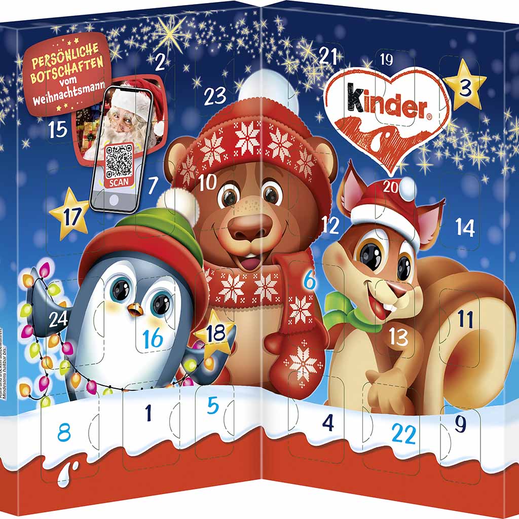 Tisch-Tisch-Adventskalender mit 24 einzeln verpackten Mini-Vollmilchschokoladen. Erhältich in 2 Motiven. Keine Auswahl möglich. Bei Bestellung von größeren Stückzahlen, sind wir bemüht beide Ausführen zu liefern.