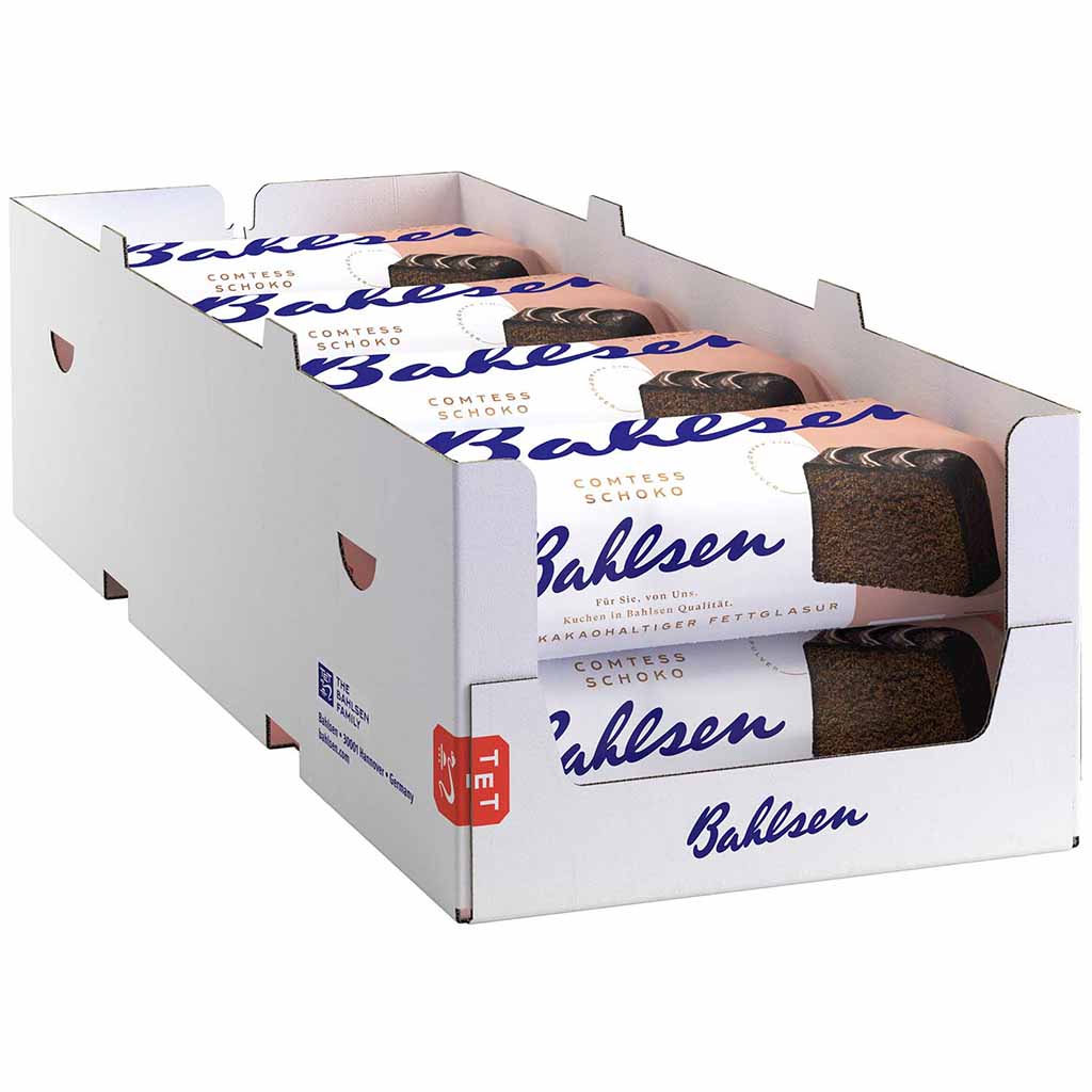 Schokoladen-Rührkuchen mit kakaohaltiger Glasur. Bahlsen Comtess Schoko ist ein purer Genuss. Der saftig-leckere Rührkuchen besticht durch seinen vollen Geschmack aromatischer Schokolade und einen weichen Biss, der Ihnen das Wasser zusammenlaufen lässt. Überzogen ist die Spezialität mit einer feinen Kakaoglasur und ansprechzendem Schokoladendekor. Durch die wiederverschließbare Verpackung bleibt der Kuchen übrigens lange frisch.