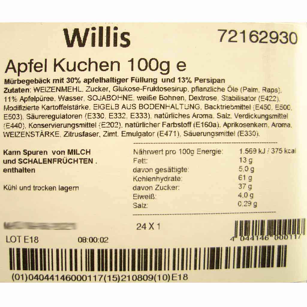 24x Willis Apfel Kuchen á 100g=2,4kg MHD 13.11.25