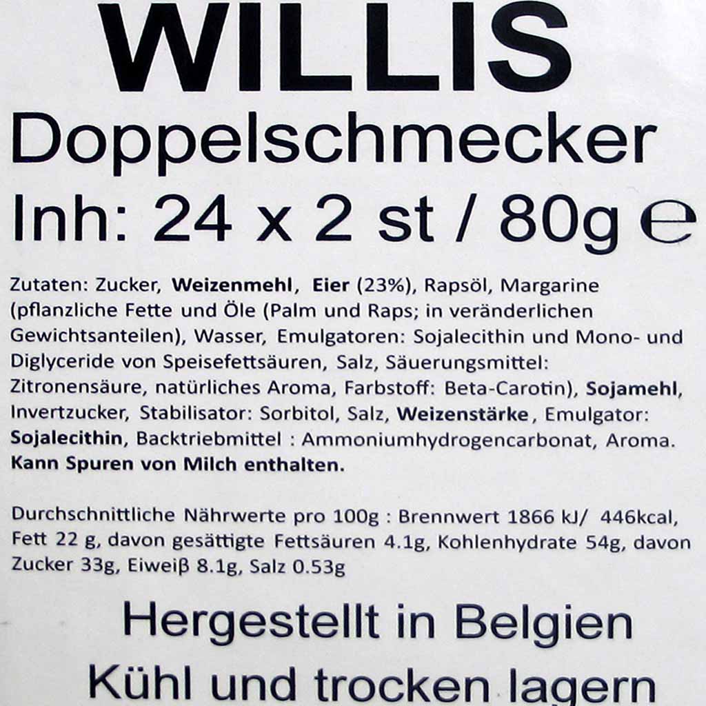 24x Willis Doppelschmecker Waffel á 80g=1,92kg MHD 30.11.25