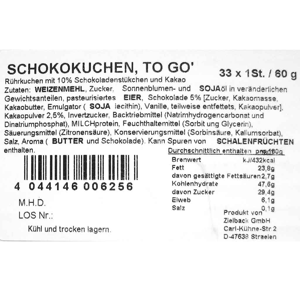 VE 33x Willis To Go - Schoko Kuchen á 60g = 1980g