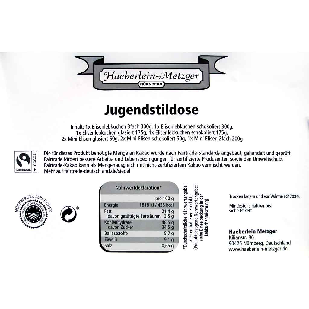 Haeberlein-Metzger Nürnberger Elisenlebkuchen Mischung in Jugendstildose 1350g MHD 30.04.26