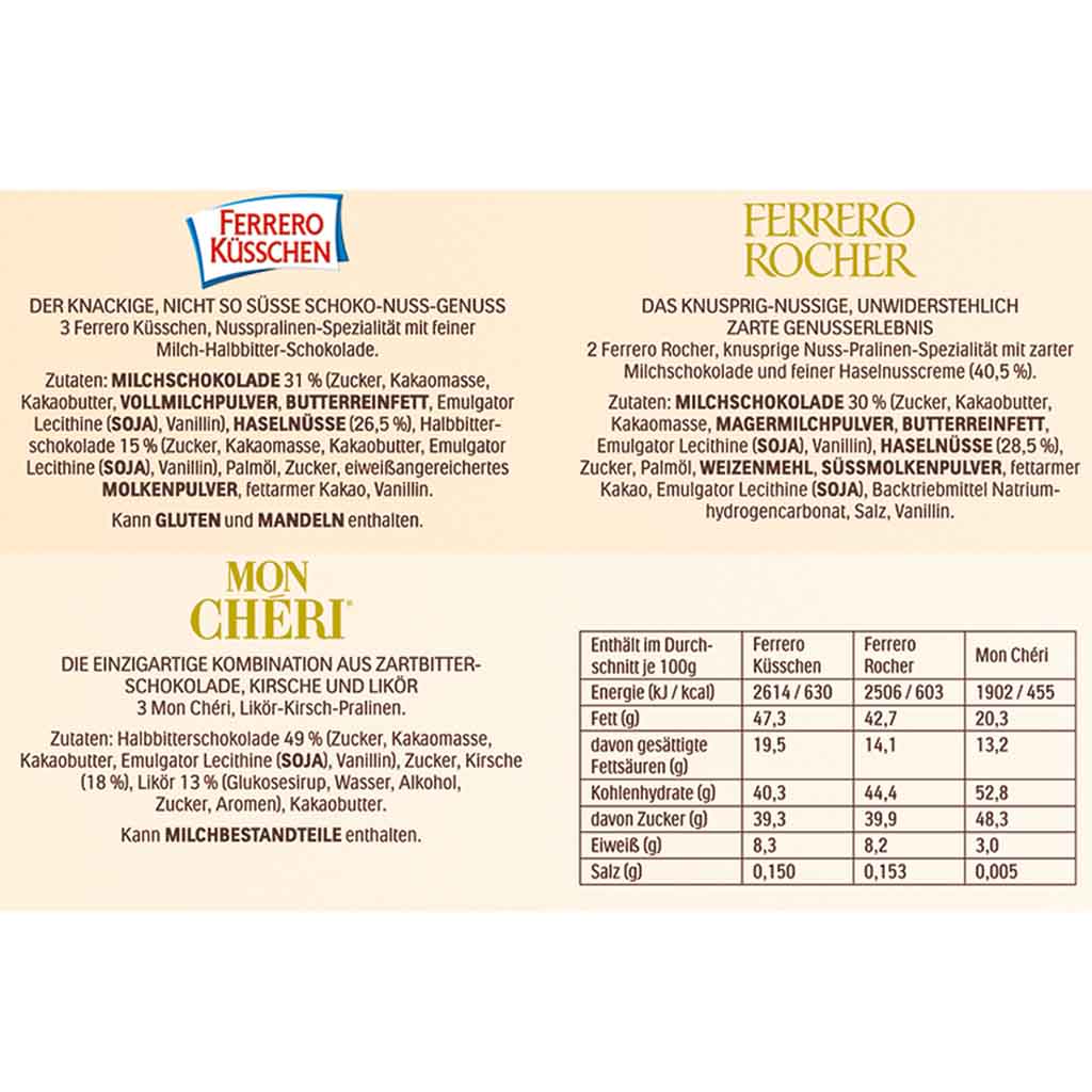 - MON CHERI: Likör-Kirsch-Pralinen.
