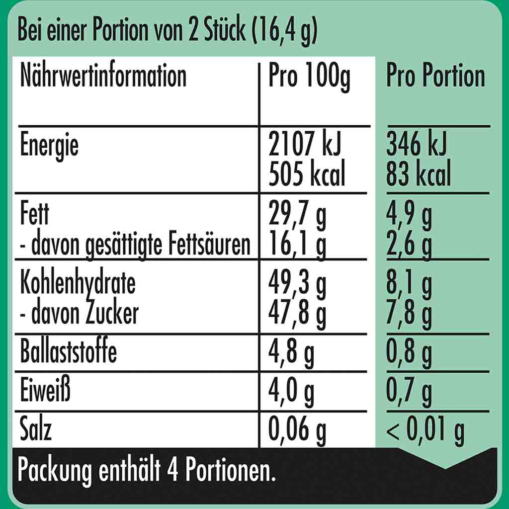 - Fett: 29,7 g, davon gesättigte Fettsäuren: 16,1 g