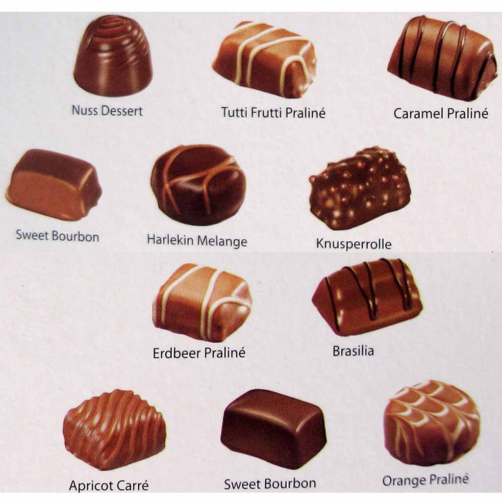 Köstliche Pralinen mit Zartbitter- oder Milchschokolade überzogen.