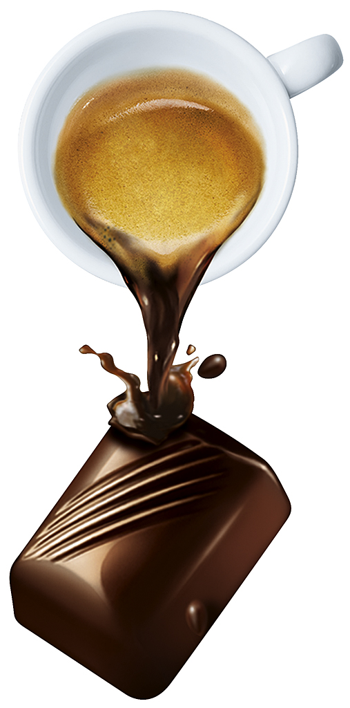 Kaffee-Pralinen mit flüssigem Espresso in feiner Vollmilch- und Halbbitterschokolade. Espresso to go. Kosten Sie Kaffee von seiner Schokoladenseite. Im Inneren der Pralinen aus knackiger Vollmilch- und Halbbitterschokolade befindet sich flüssiger Espresso aus Miscela Arabica Bohnen, der mit seinem kräftigen und herben Geschmack perfekt mit der feinen Süße der Umhüllung harmoniert.