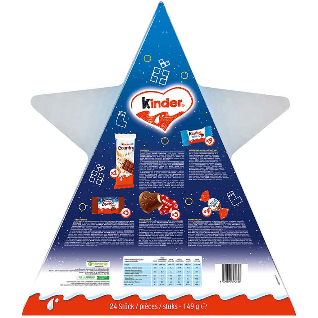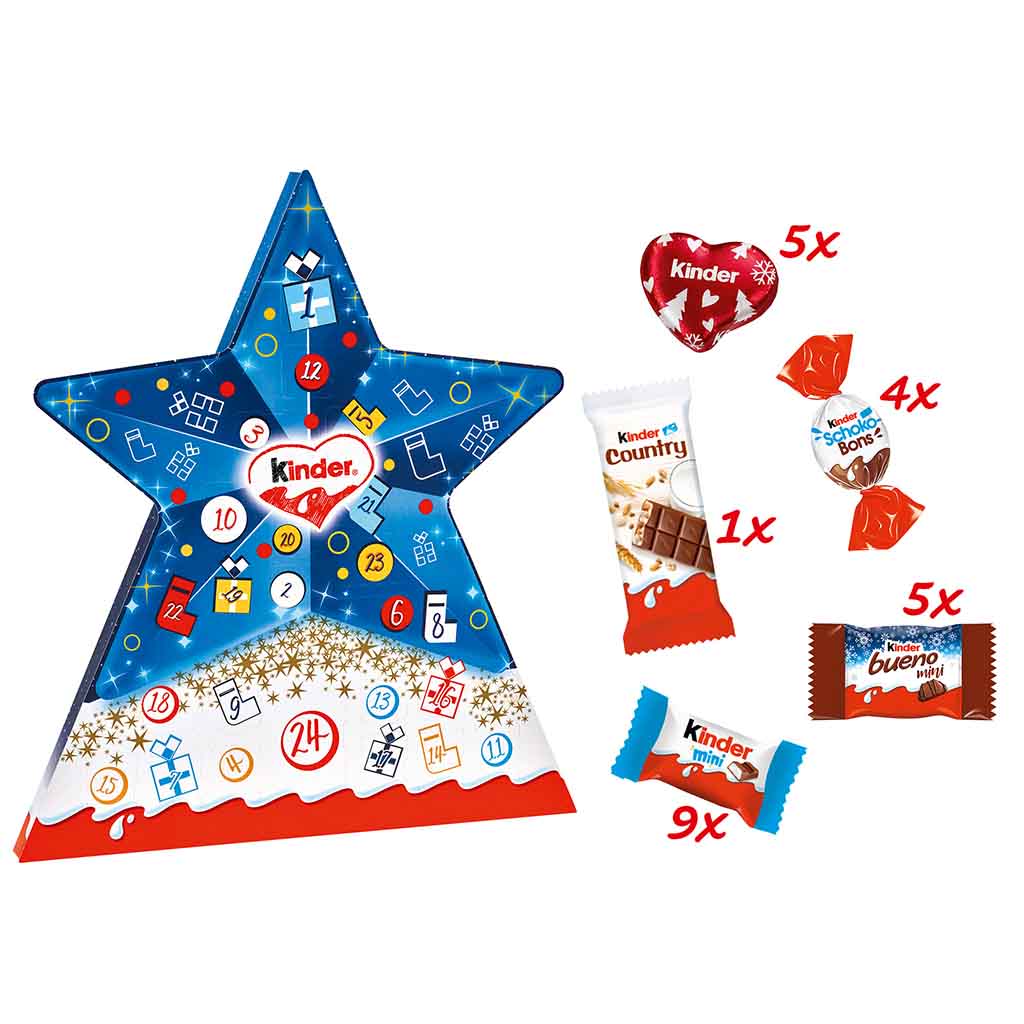Adventskalender mit einer Mischung der beliebtesten kinder Schokoladenspazialitäten. Hinter den 24 Türchen verbergen sich tolle Leckereien aus der Produktlinie Kinder von Ferrero.