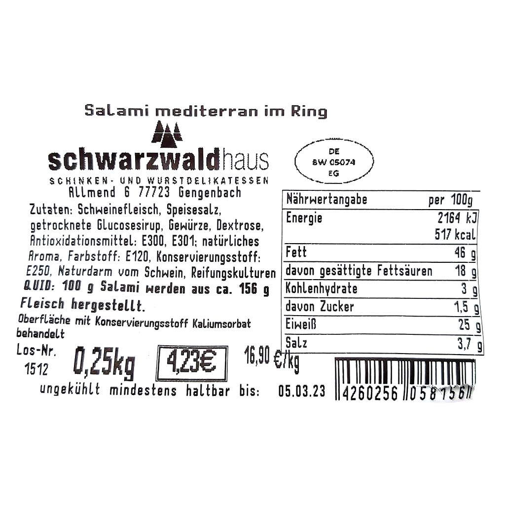 Schwarzwaldhaus Salami mediterran im Ring 250g