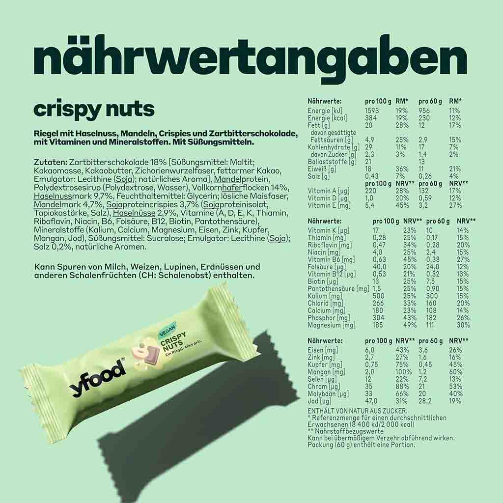 yFood Energieriegel Crispy Nuts Vegan 12x60g=720g MHD 10.04.26